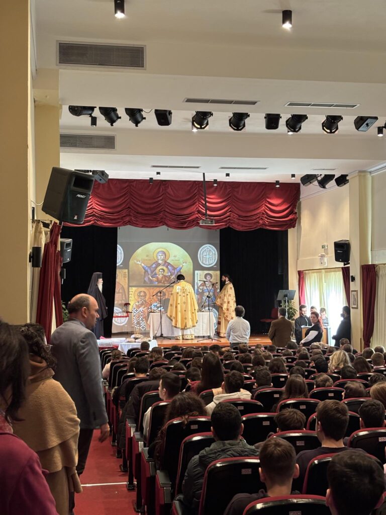 Με ιδιαίτερη λαμπρότητα και χαρά τιμήθηκε, σήμερα Παρασκευή 30 Ιανουαρίου 2026, η εορτή των Τριών Ιεραρχών, προστατών της Παιδείας και των Γραμμάτων, σε όλες τις βαθμίδες εκπαίδευσης (Βρεφονηπιακός Σταθμός, Παιδικός Σταθμός, Νηπιαγωγείο, Δημοτικό, Γυμνάσιο και Λύκειο) των Εκπαιδευτηρίων μας. Ο Σεβασμιώτατος Μητροπολίτης Πειραιώς κ. Σεραφείμ βρέθηκε κοντά στους μαθητές και τις μαθήτριες των Εκπαιδευτηρίων μας, προκειμένου αφενός να τους απευθύνει λόγο αγάπης και εόρτιες ευχές, αναφερόμενος ταυτόχρονα στα διδάγματα που εκπέμπουν οι Άγιοι Τρεις Ιεράρχες, προστάτες της παιδείας μας, αφετέρου να ευλογήσει τη Βασιλόπιτα και να προσφέρει ευλογίες και ενθύμια σε όλους