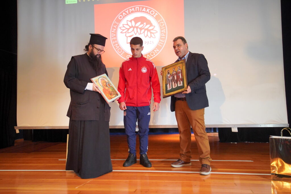Ο Μητροπολίτης Πειραιώς ευχαρίστησε τον ποδοσφαιριστή Χρήστο Μουζακίτη για την παρουσία του στα Εκπαιδευτήρια της Μητροπόλεως Πειραιώς.Ο βραβευμένος με το «European Golden Boy Web 2025»